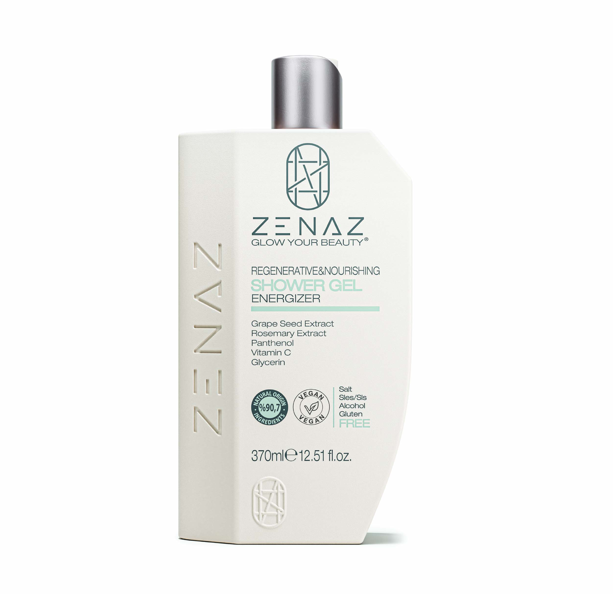 Zenaz Regenerative & Nourishing Shower Gel, enriched formula with natural origin ingredients helps to complete your daily care with moisturizing content while cleansing. *Grape Seed Extract, which neutralizes free radicals by antioxidants in it con- tents, supports the reduction of skin aging. *Rosemary Extract, which cleans the toxins in the skin. Panthenol, Vitamin E and Vitamin C softens the skin barrier, deeply nourishes the skin and makes the skin look more vibrant and bright.