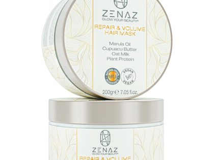 Zenaz Repair & Volume Hair Mask, in its content Marula Oil has rich fatty acids, provides care for the hair at the cellular level, strengthens it and protects it from environmental factors. Cupuacu Butter deeply moisturizes the hair, prevents frizz. Reduces hair breakage, provides shine. Strengthens hair strands and increases elasticity with its Plant Protein and helping to reduce breakage. It also aids in repairing hair damage caused by chemical treatments, heat styling and environmental factors. Oat Milk mouisturizes dry hair, thus helping to repair dry and Brittle hair and makes thin hair more voluminous.